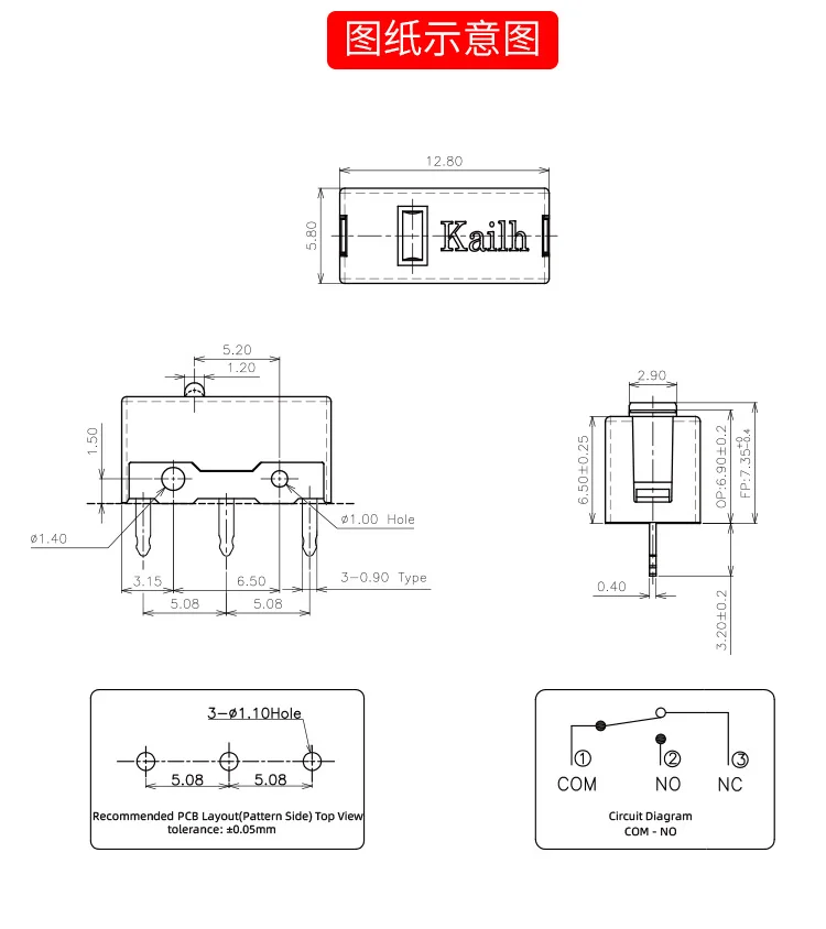 Микро-переключатель Kailh, игровая мышь с поддержкой 80 м, 3 контак...