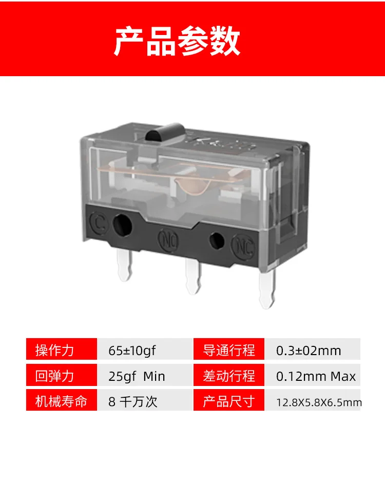 Переключатель мыши Kailh GM8.0 Micro Swicth GM, кнопка с красной то...