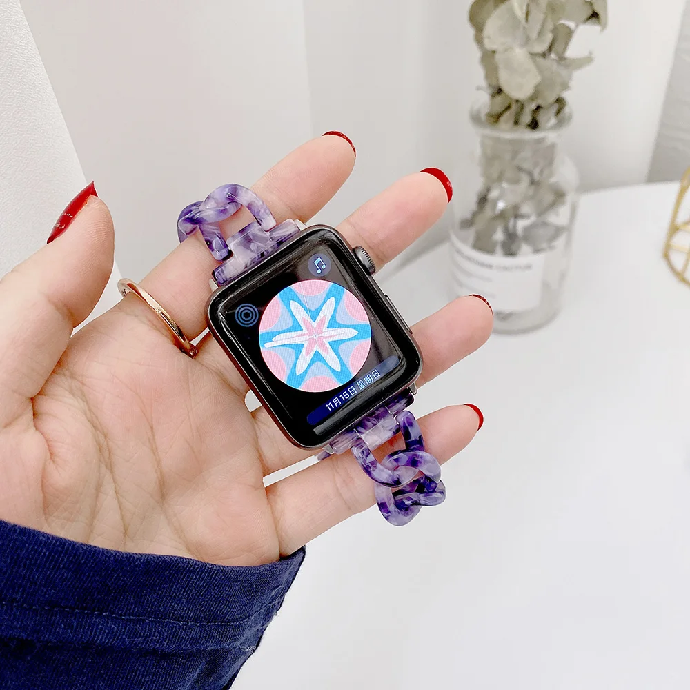 Гладкий ковбойский браслет-цепочка из смолы для Apple Watch Band 40 мм 44 мм 38 мм 42 мм, легкий ремешок для Iwatch Series 6 SE 5 4 3, ремешок