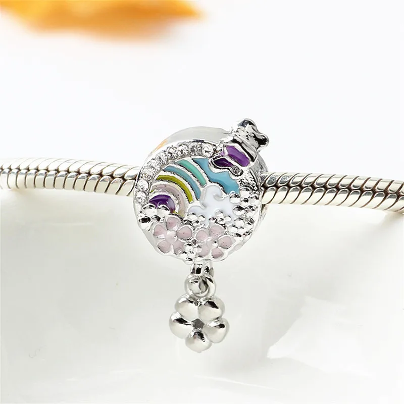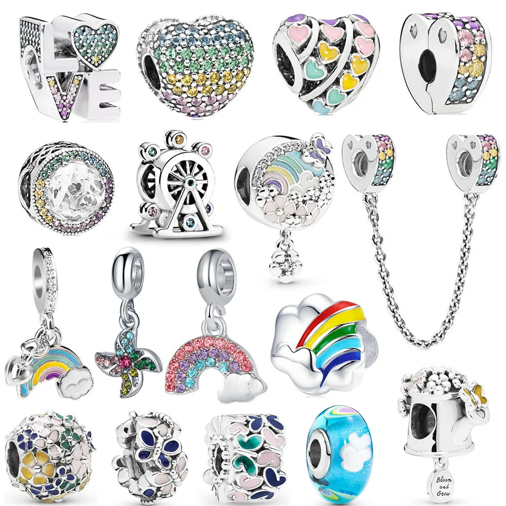 Новая мода Цвет цвета радуги с цветочным рисунком ветряная мельница, сделай сам, бисер Подходит для оригинальным браслетам Pandora, брелоки, в европейском стиле; Для изготовления ювелирных изделий