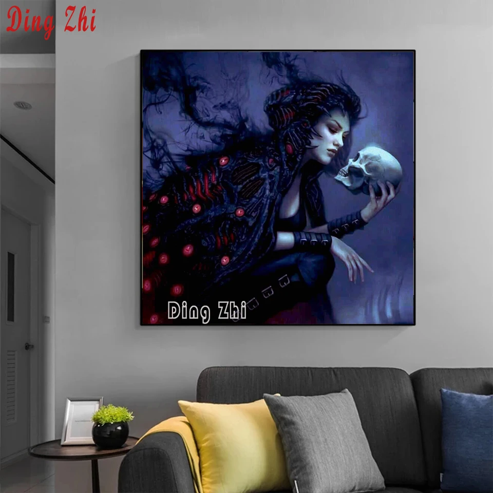 Алмазная живопись, готическое искусство, женщина, полностью квадрат...
