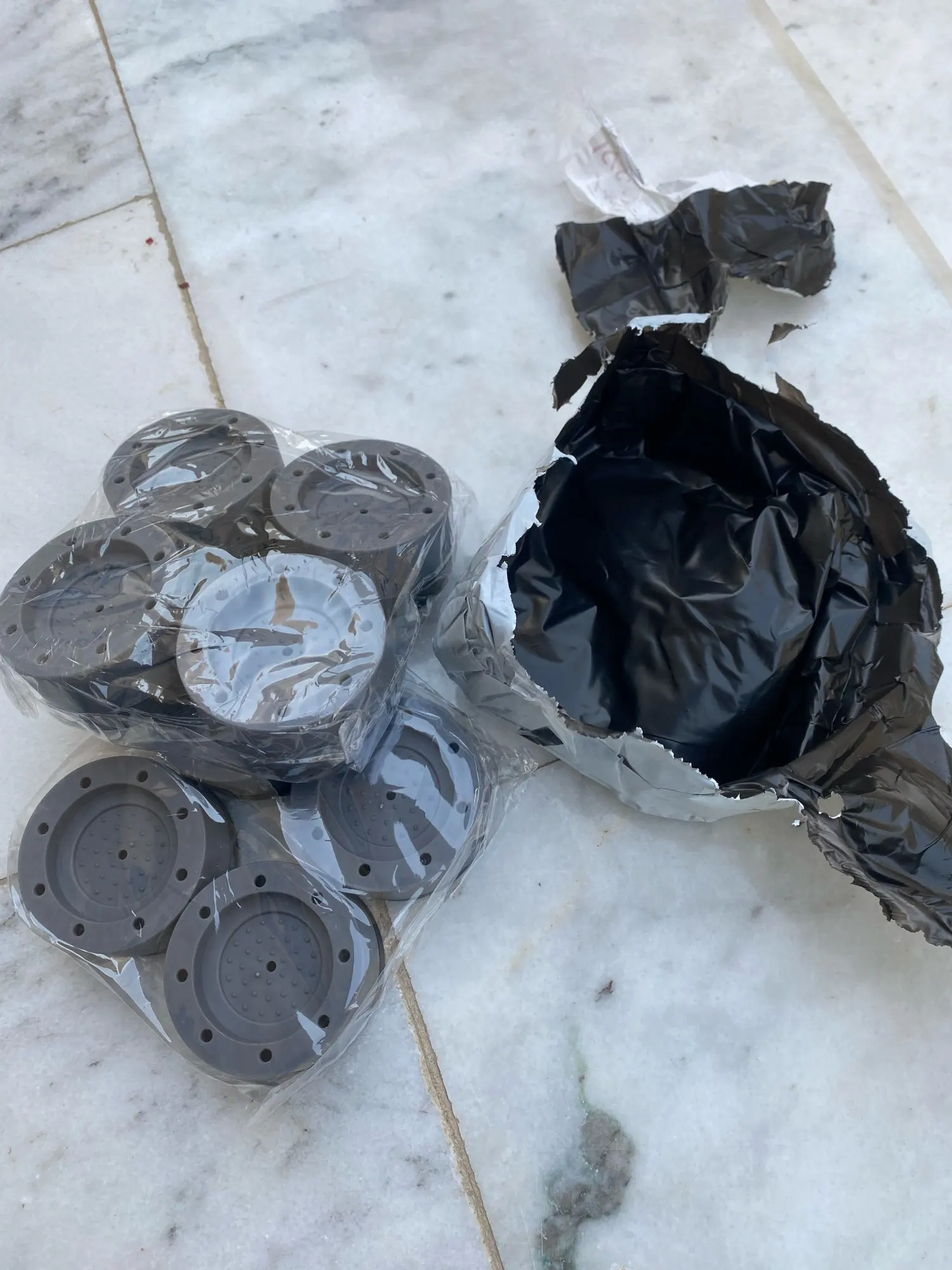 Посылка пришла быстро. Заказывал, кстати, по причине того, что при перегруженном барабане моя стиралка во время отжима иногда пыталась сбежать с места стирки и начинала буквально съезжать с места парковки... Ну, вы поняли. Короче, подставки эти в серой своей части жёсткие, а чёрной мягче. Толщина их два пальца. Стиральная машина соответственно стоит выше и устойчиво. Потом дополню отзыв. Жена намечает глобальную стирку. Вот она и протестируем эти подставки. Продавцу спасибо! Рекомендую всем.
