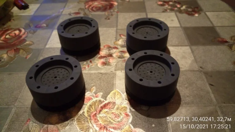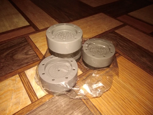 Подставки немного удивили..... Они пластиковые ! Я думал они будут из плотной резины или какого-то плотного но "подвижного" материала. Как они будут гасить вибрацию, если они изготовлены из твердого пластика, пока не понятно. Изготовлены качественно, хороший материал, крепкий на вид. Ещё не устанавливал, т.к. покупал для стиралки в загородный дом. Если кому-то будет интересно и будет доступна возможность, дополню отзыв позже.