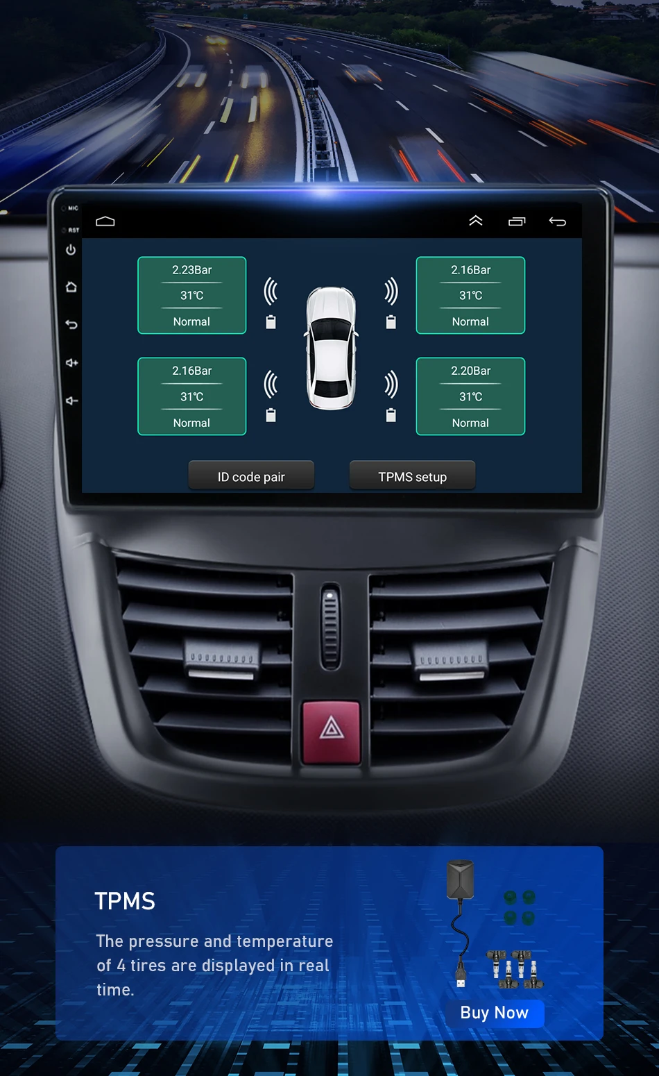 Все больше и больше национальных стандартов производства автомобилей требуют, чтобы транспортные средства были оснащены устройствами сигнализации давления в шинах. Можно увидеть важность устройств сигнализации давления в шинах. Кликните на картинку ниже, чтобы купить устройство сигнализации давления в шинах, подключите радио и оставьте отзыв о состоянии шин в режиме реального времени.