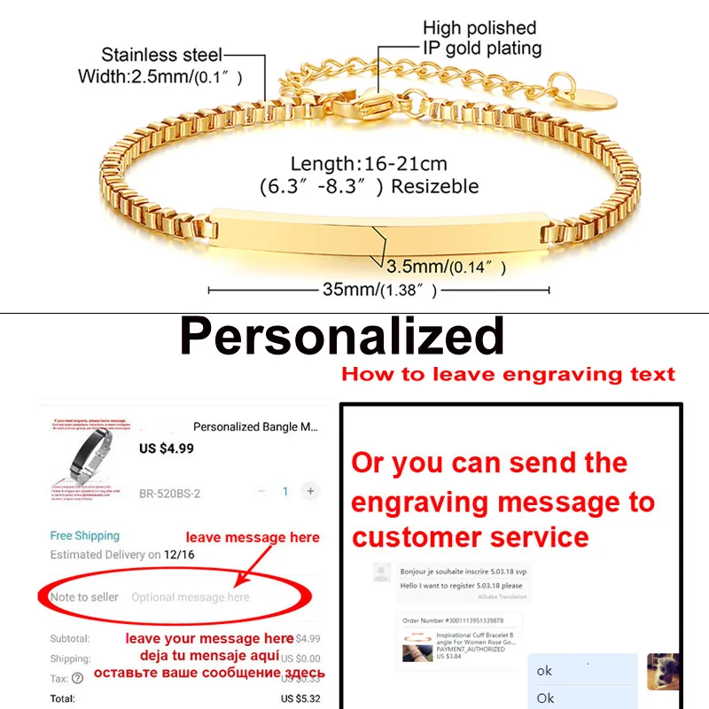 Браслет-цепочка Женский, из нержавеющей стали, с гравировкой, 2021