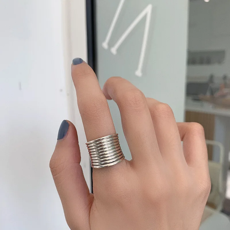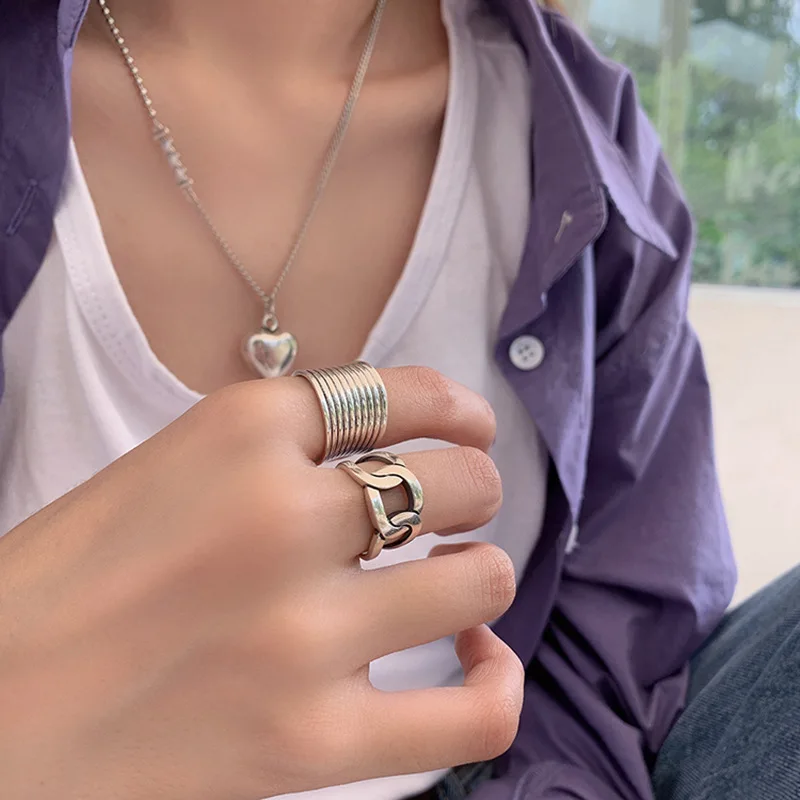 QMCOCO серебряного цвета широкие кольца ретро INS модные креативные широкие открытые регулируемые модные ювелирные изделия