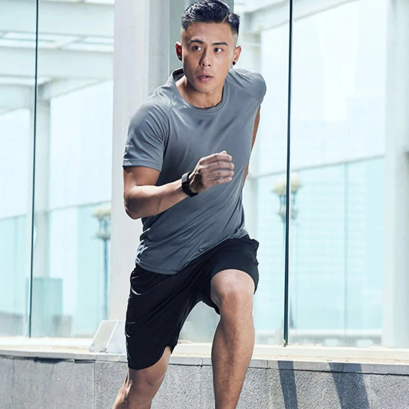 Мужские футболки, летние дышащие сетчатые спортивные футболки, топ, повседневные однотонные футболки для фитнеса, тренажерного зала, бега, спортивная одежда