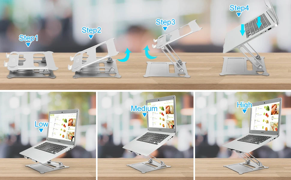 Рассеивание тепла: наклон вперед и дизайн открытого стиля обеспечивают лучший поток воздуха для вашего ноутбука, больше не беспокойтесь о перегреве.