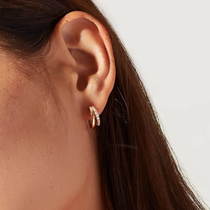 Женские двухслойные серьги-кольца из стерлингового серебра 925 пробы с пряжкой и кристаллами
