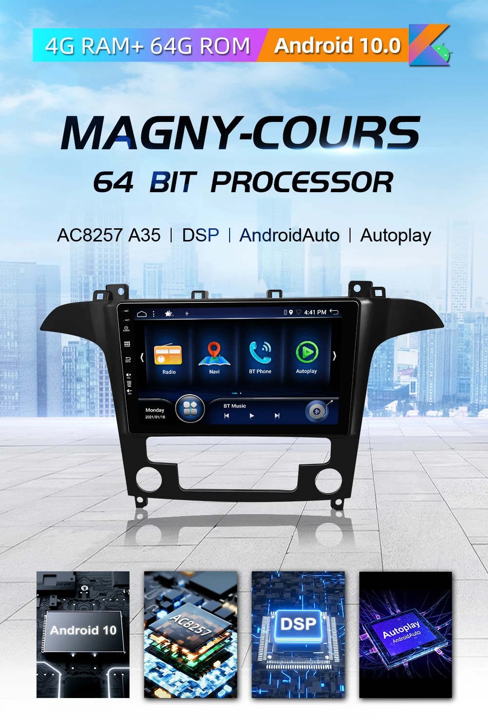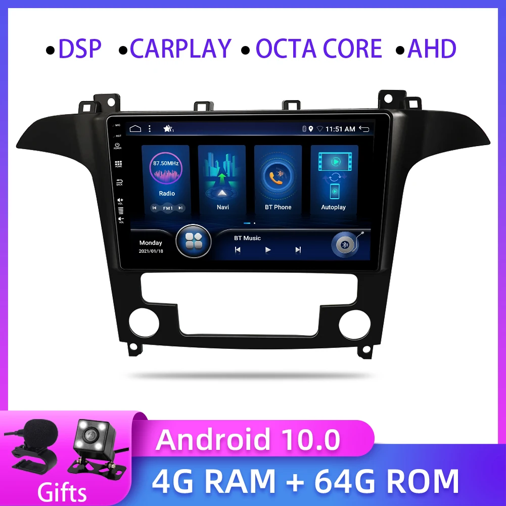 Bosion Android 10 4 Гб + 64 Гб DSP для Ford S-Max S Max 2006-2015 Автомагнитола мультимедийный видеоплеер GPS WIFI BT SWC встроенный carlink