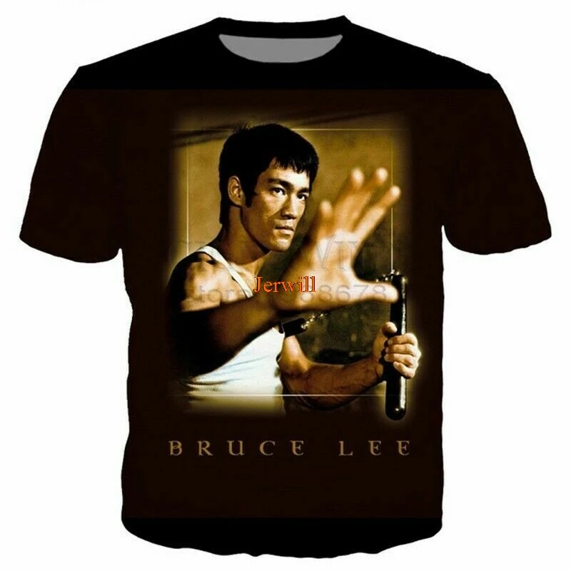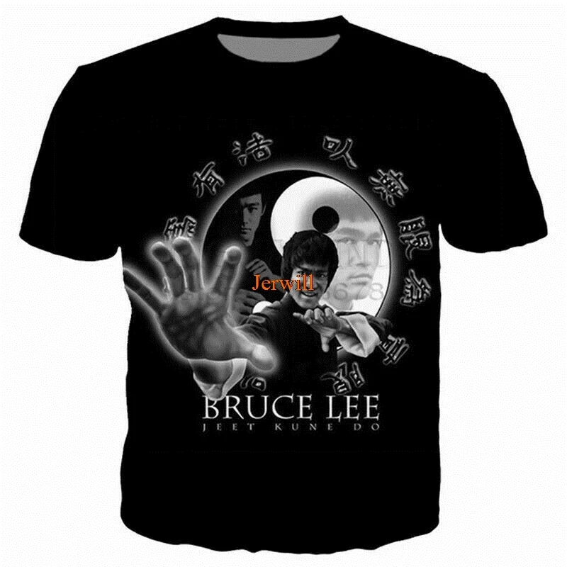 Новая мода Женщины Мужчины Кунг Фу суперзвезда Брюс Ли 3D печать Повседневная футболка