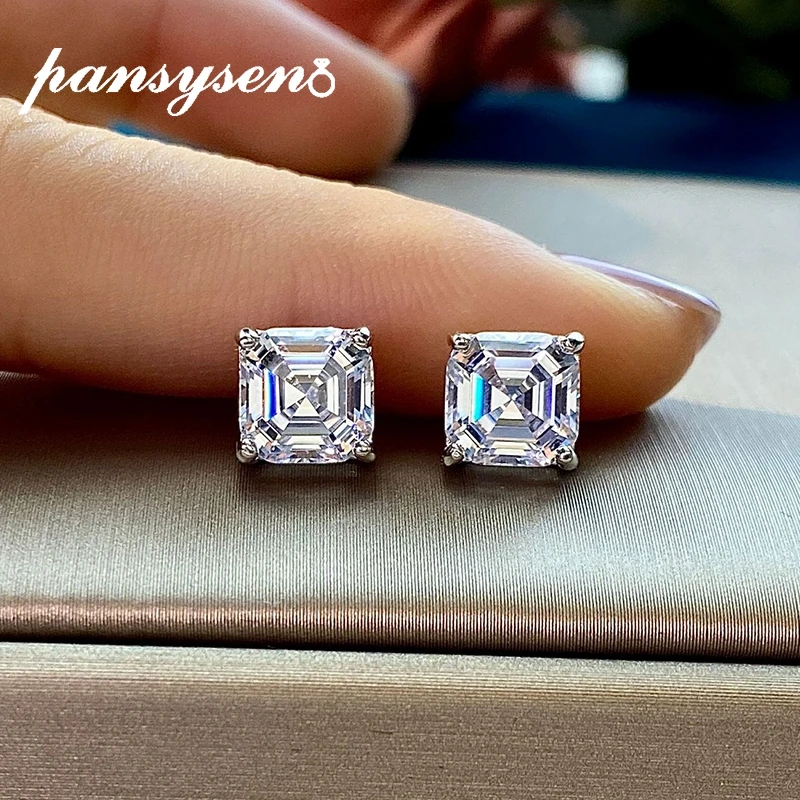 Серьги-гвоздики PANSYSEN в классическом стиле, свадебные ювелирные украшения из стерлингового серебра 100% пробы с имитацией муассанита, 925 пробы