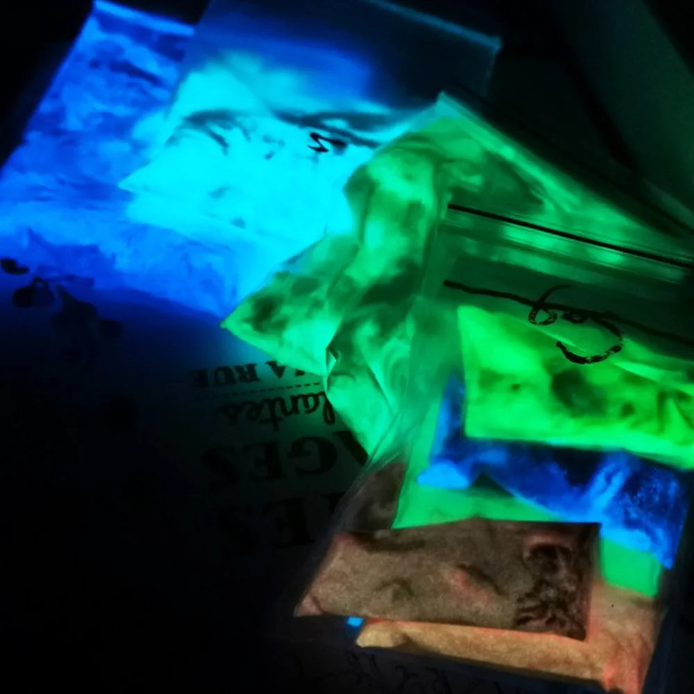 Перемешал с прозрачным ультрафиолетовым клеем. Клякся под ультрафиолетом быстро схватилась. В темноте светится. Осталось проверить как долго. Своих денег, думаю, стоит.