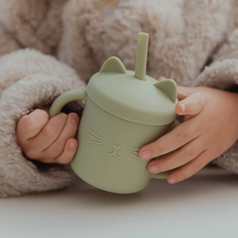 Бутылочка для кормления ребенка чашки силикона с милым рисунком кот...
