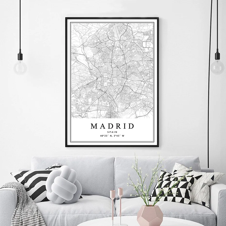 Плакаты с картой испанского города, Барселона, Мадрид, Малага, Севилья, валенция, сарагоза, картины на холсте, настенные художественные принты, домашний декор интерьера