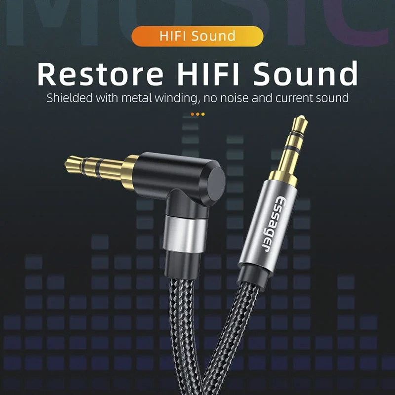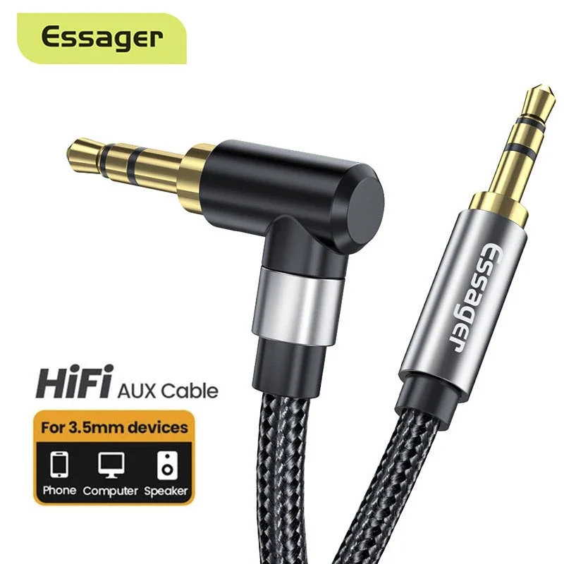 Кабель Essager Aux 3,5 мм, аудиокабель с углом 90 градусов, Hi-Fi 3,5, AUX шнур для проводных наушников, Xiaomi, динамик, AUX шнур