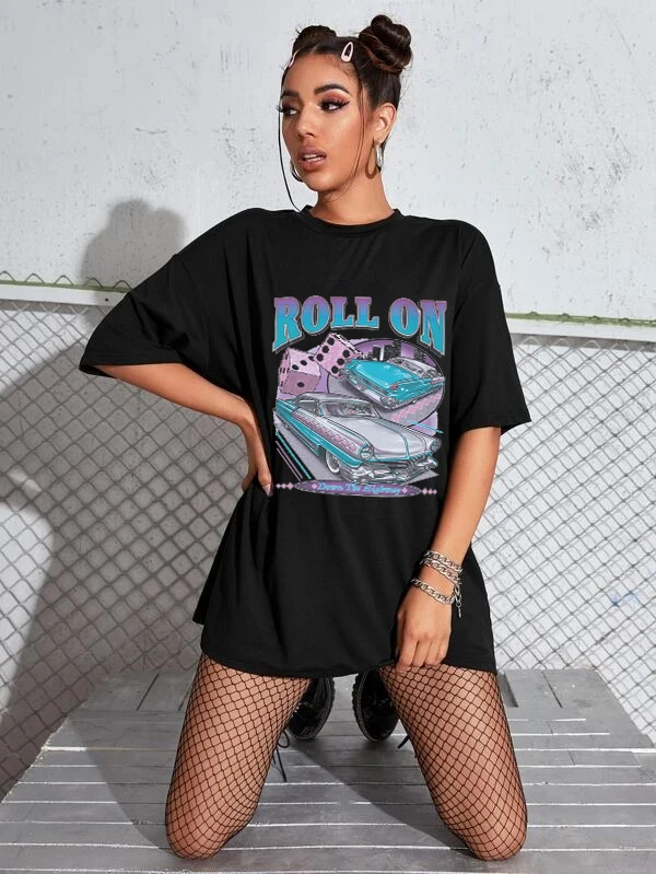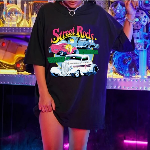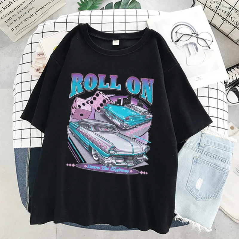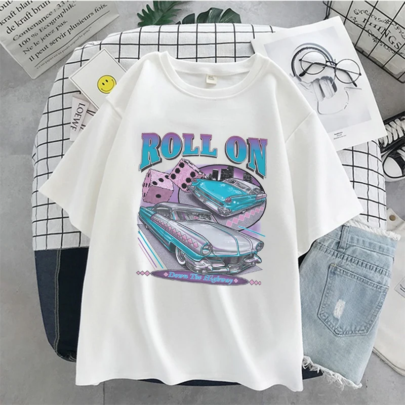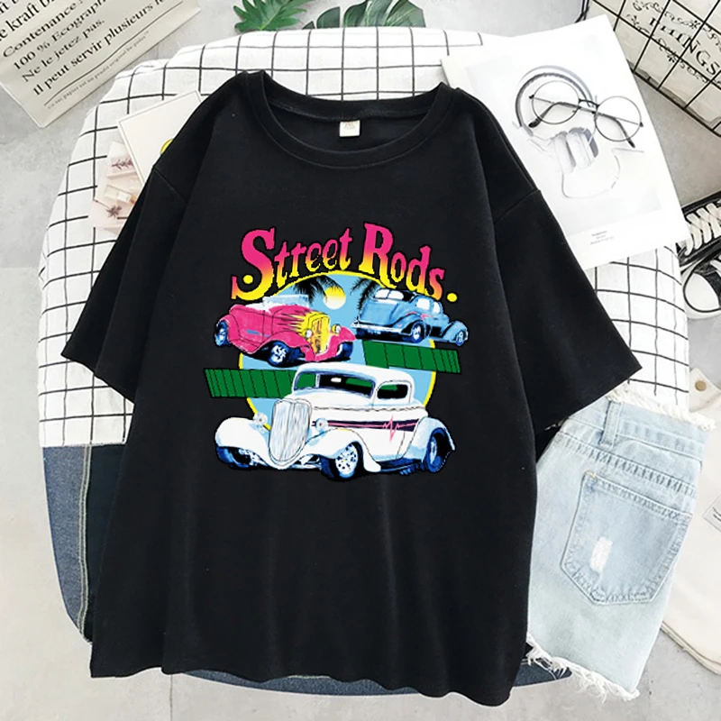 Футболка женская в стиле Харадзюку, свободная хлопковая винтажная Повседневная тенниска с принтом автомобиля, крутая майка с коротким рукавом, Повседневная Уличная одежда, на лето