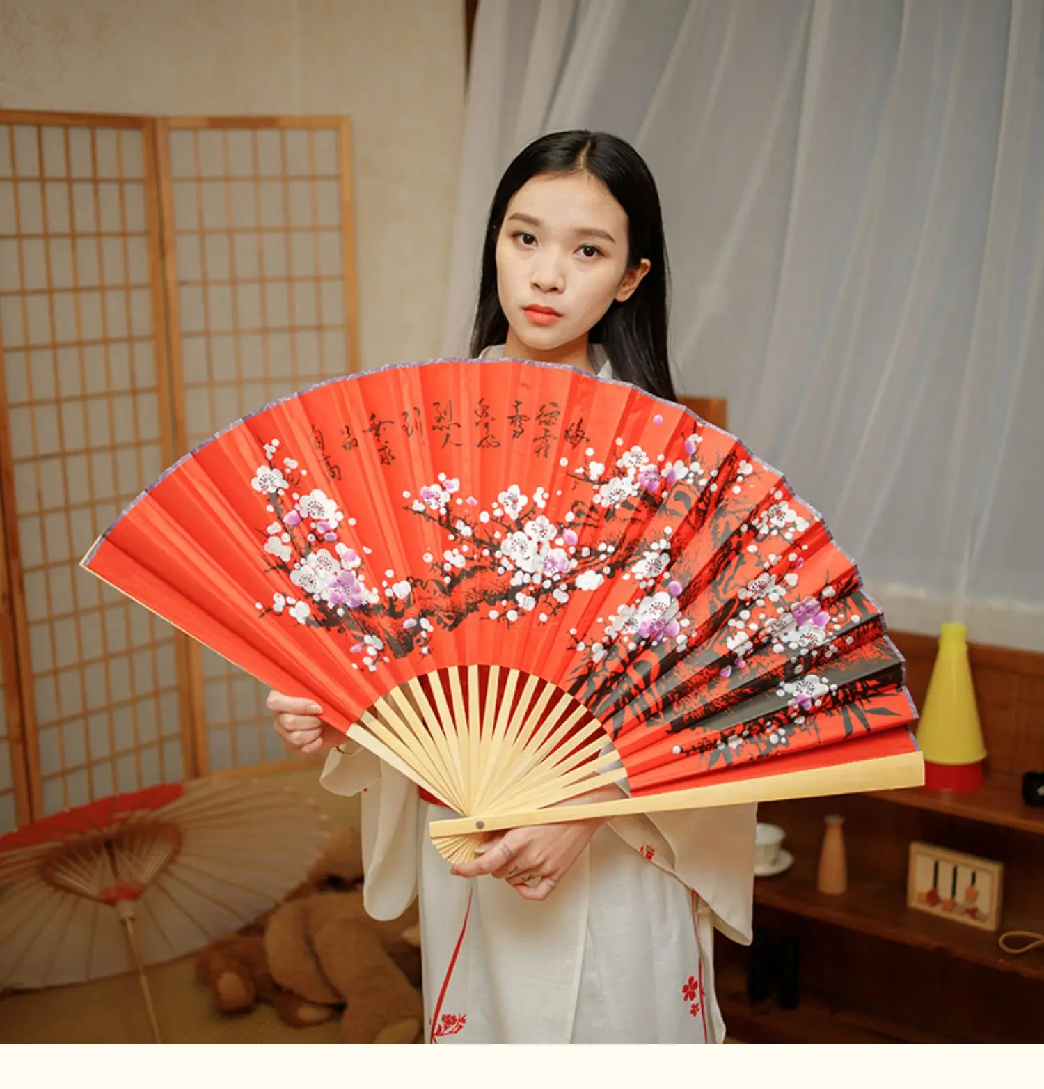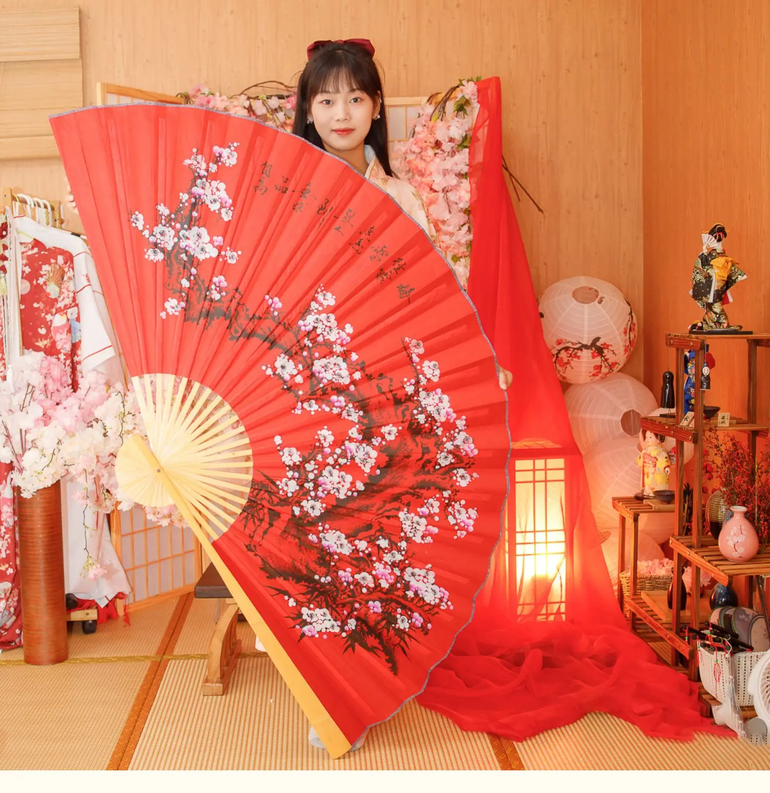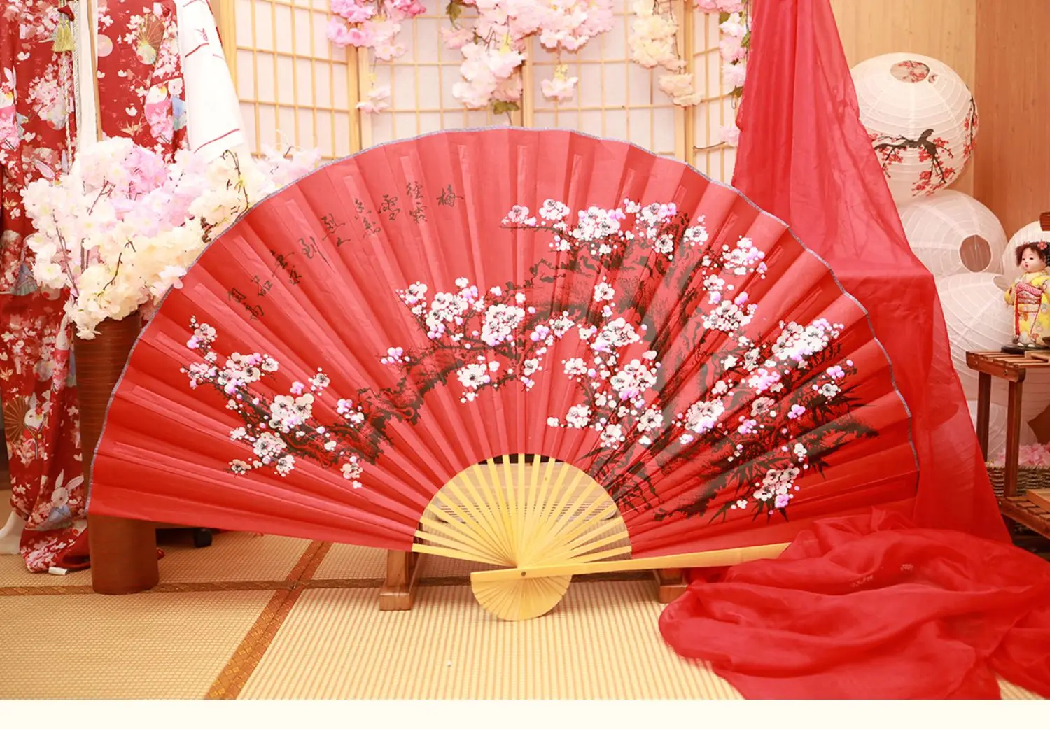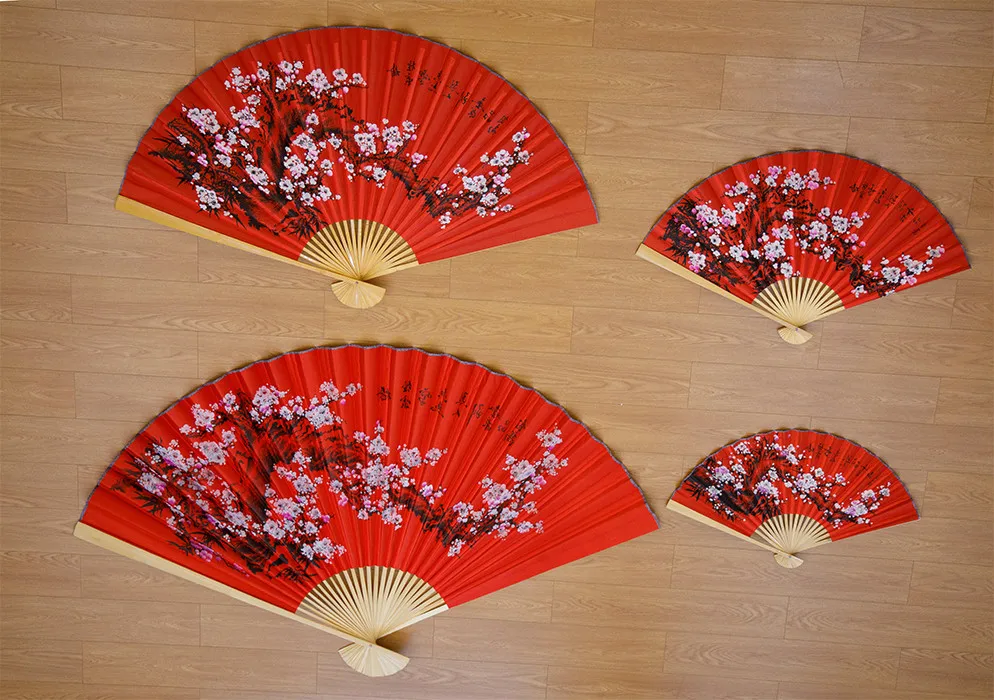Большой веер из ткани, китайский праздничный декоративный веер в виде Красной сливы, классическое настенное крепление, складной декоративный реквизит для фотосъемкипредставлений