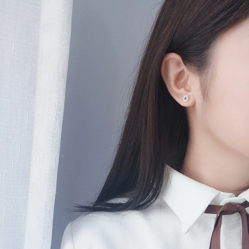 Женские серьги-гвоздики из серебра 925 пробы с цирконом