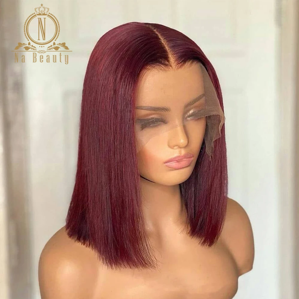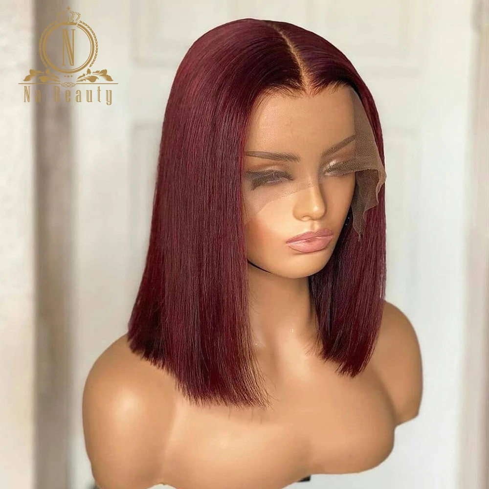 Парик из человеческих волос бордового, красного цвета, 13x4, парики из натуральных волос на сетке спереди, 99J, парики из бразильских прямых человеческих волос спереди для черных женщин, Nabeauty