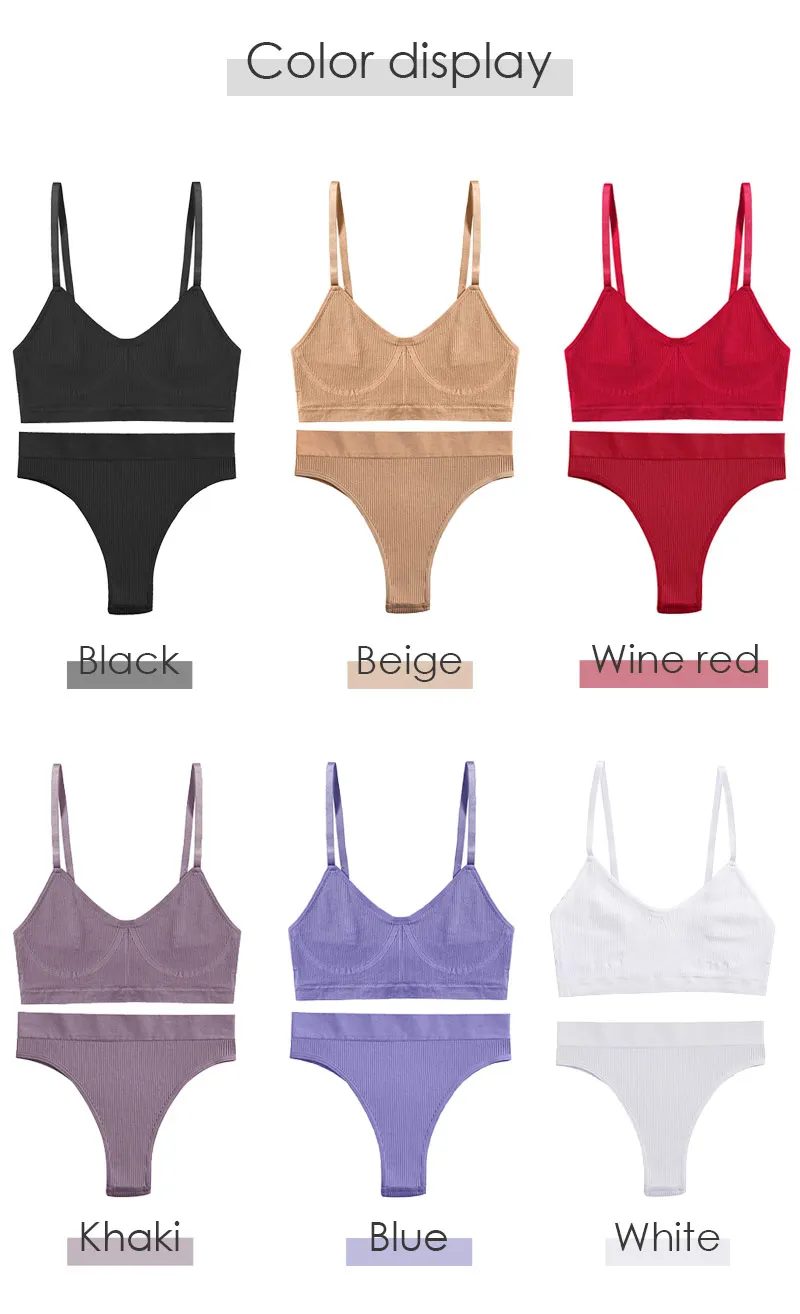 Комплект женского Бесшовного нижнего белья с трусиками-стрингами и высокой талией