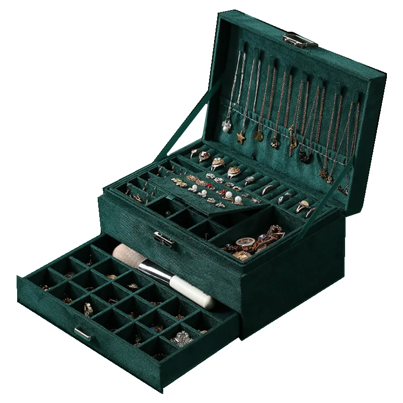 2022 ретро многослойная темно-зеленая бархатная шкатулка для ювелир...
