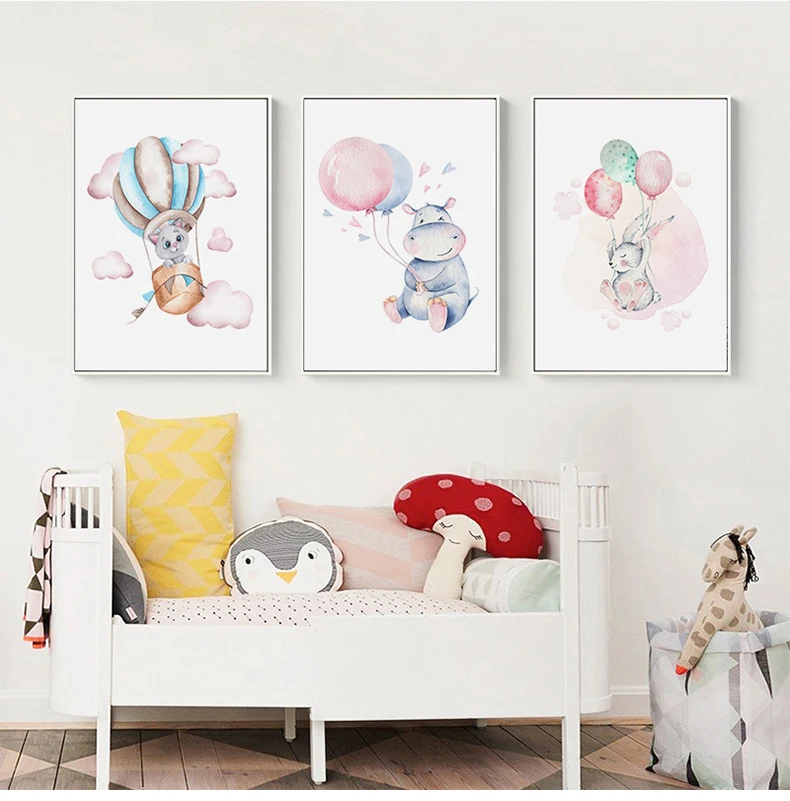 Картина на холсте для детской комнаты, с изображением животных, пин...