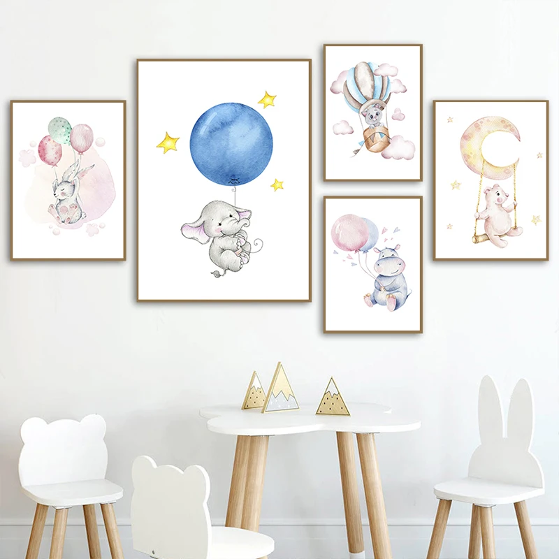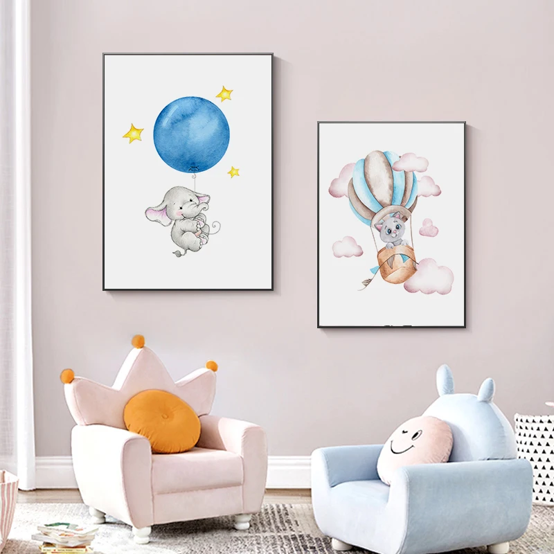 Детская Настенная картина со слоном и воздушным шаром, постер с при...