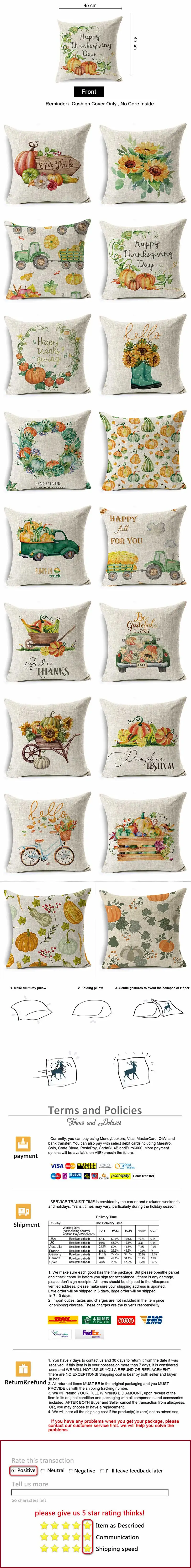 Наволочки для подушек на День Благодарения, изображение тыквы, грузовика, урожая, Деревенское искусство, Декор, наволочка для дивана, для дома, осень 45*45 см