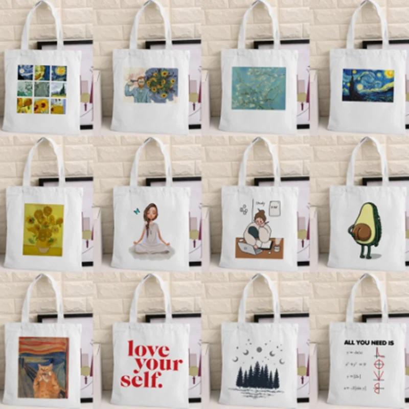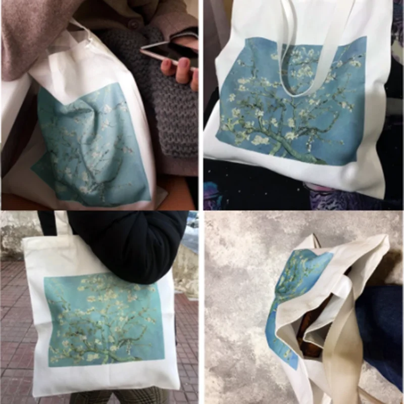 Сумка для покупок Van Gogh, графическая Сумка-тоут Harajuku, сумка для покупок, Женская Холщовая Сумка через плечо, женская сумка Ulzzang Funny Eco, Большая вместительная сумка