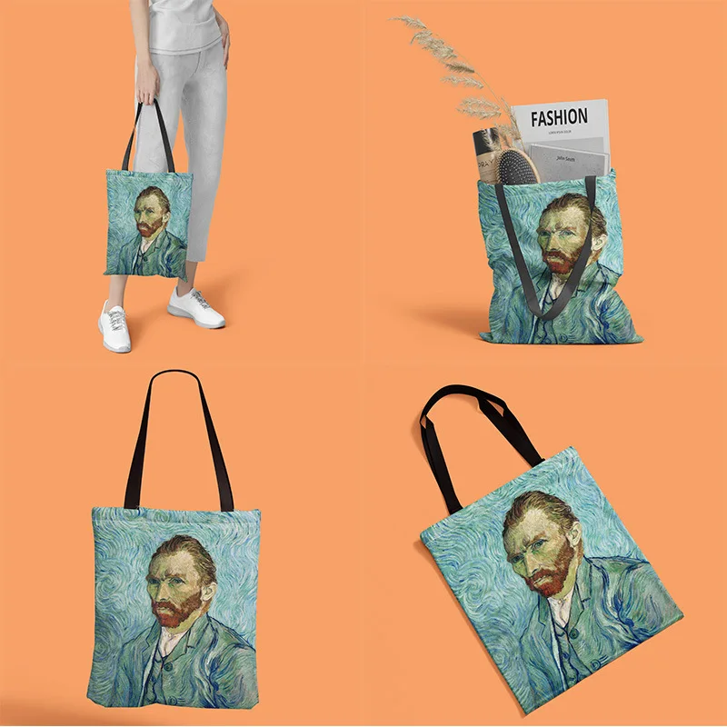 Сумка-шоппер Van Gogh женская с графическим принтом, брезентовый саквояж на плечо в стиле Харадзюку, забавная Экологически чистая вместительная сумочка на ремне