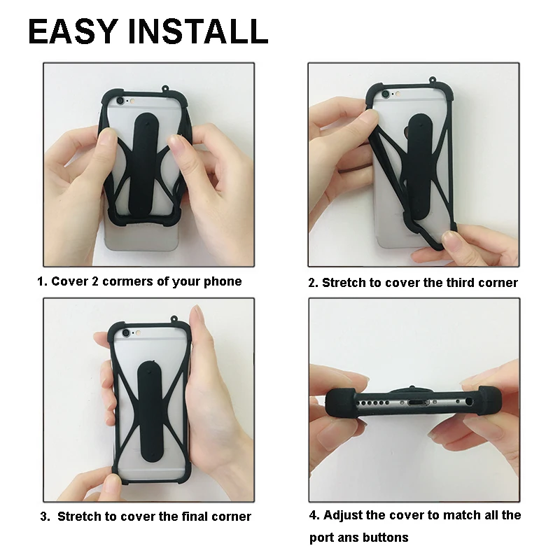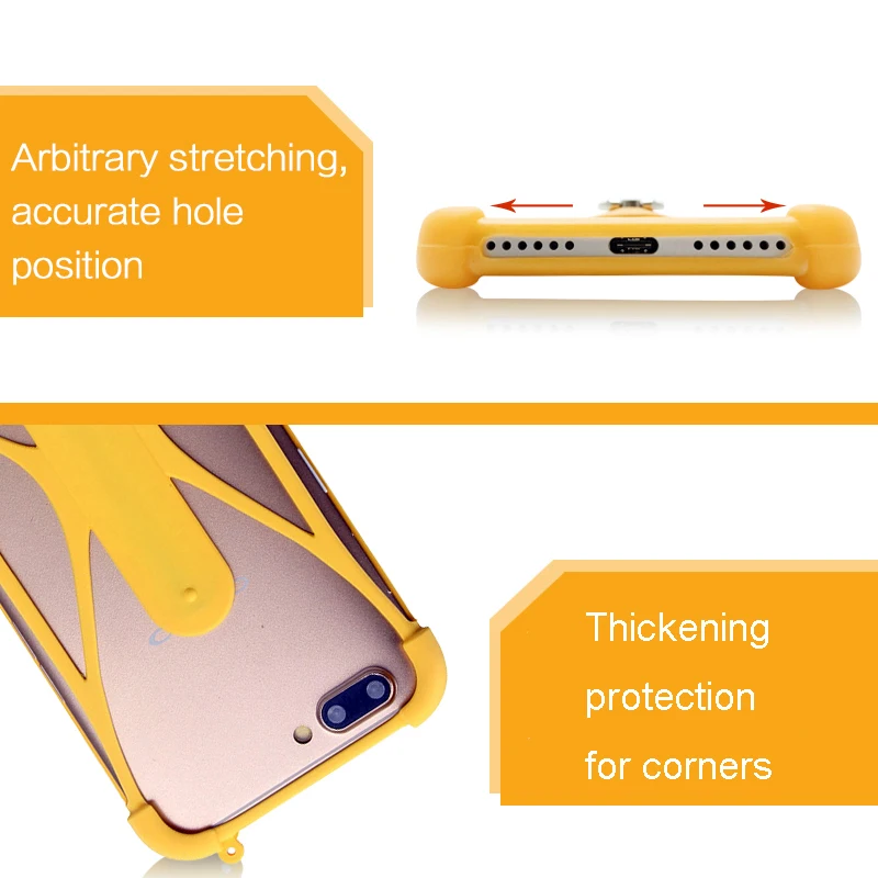 Многофункциональный чехол для телефона* Мягкий силиконовый материал, произвольное растяжение для сочетания всех отверстий и кнопок.* Дизайн Подставки для телефона, легко посмотреть фильм на столе и освободить руки.* Поставляется со шнурком, вешающим телефон на шею или на палец.* Утолщенные углы, полная защита на 360 °.