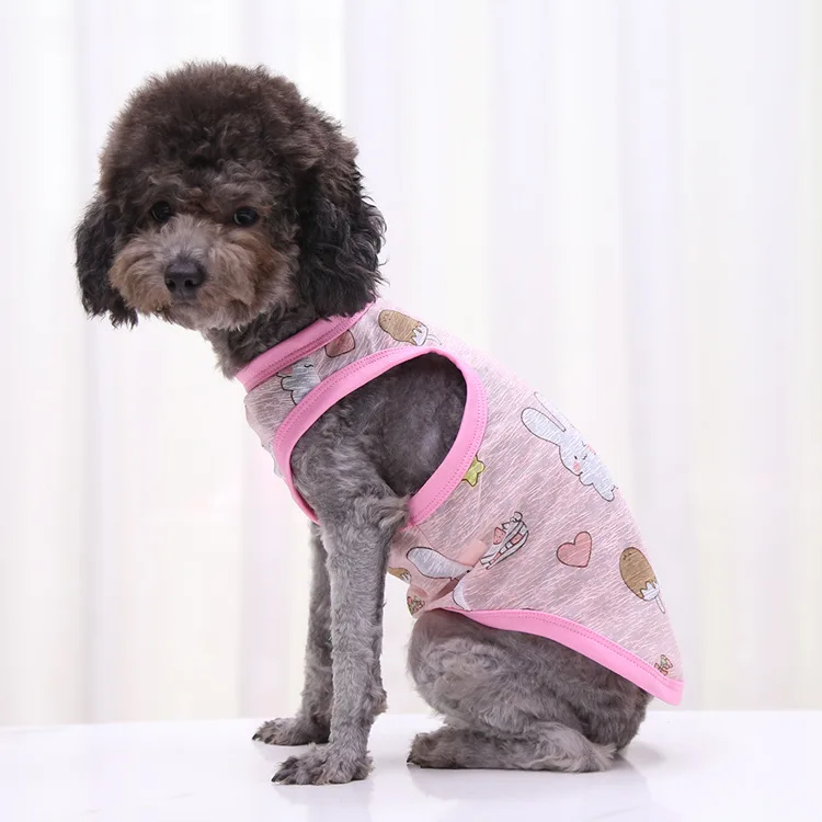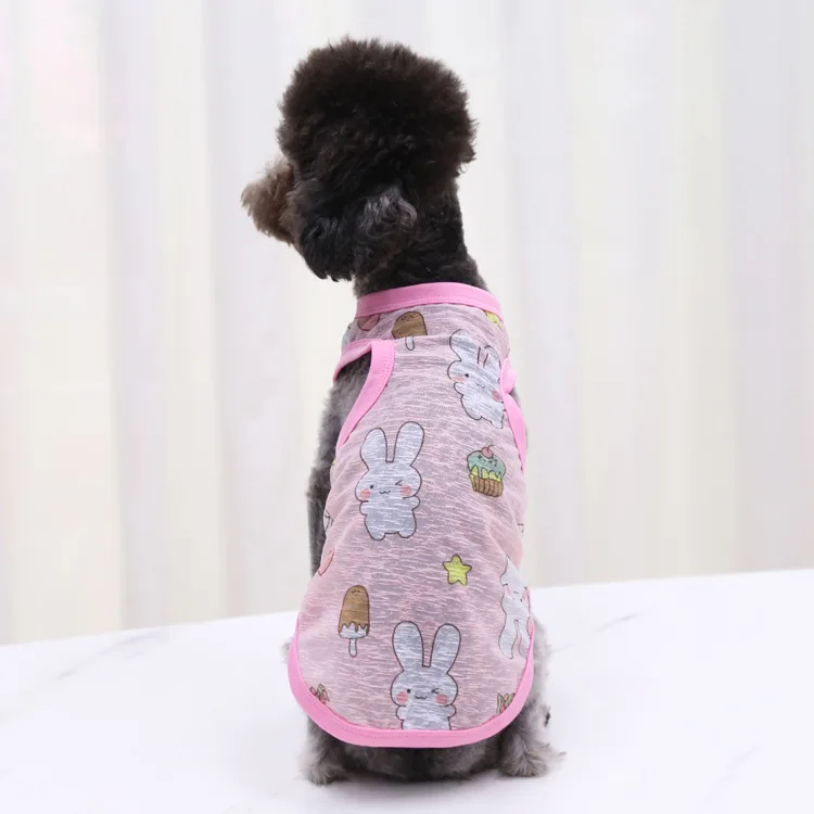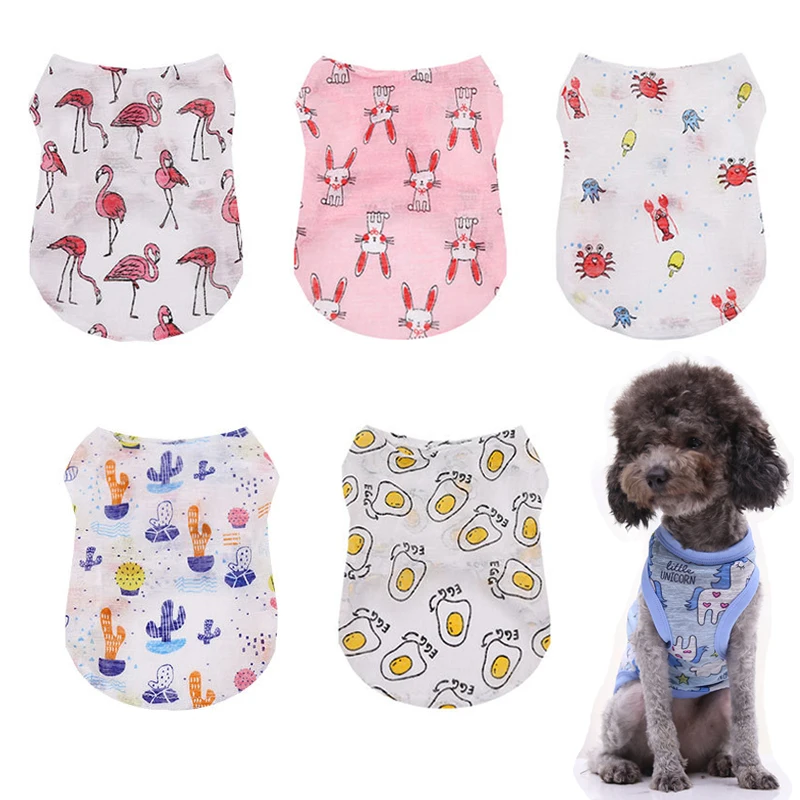 Летняя Солнцезащитная дышащая тонкая жилетка для домашних животных, кошек и собак, дизайнерская мягкая простая одежда для домашних животных без рукавов с мультяшным принтом, дешевая рубашка для щенков