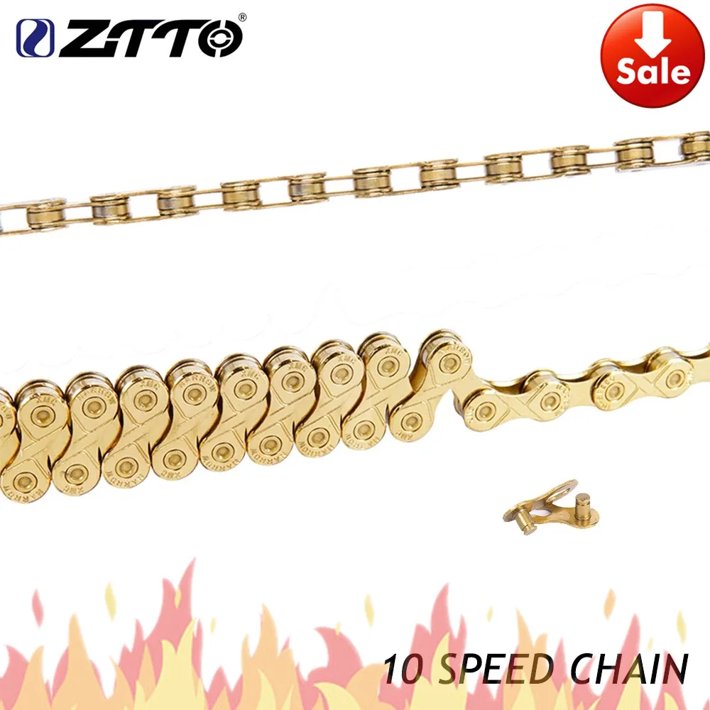 ZTTO MTB 10-скоростная цепь с золотым покрытием для велосипеда, шоссейный велосипед, горный велосипед 10 S Golden Link, совместимая с любым 10-скоростным групповым комплектом 10 в 116L