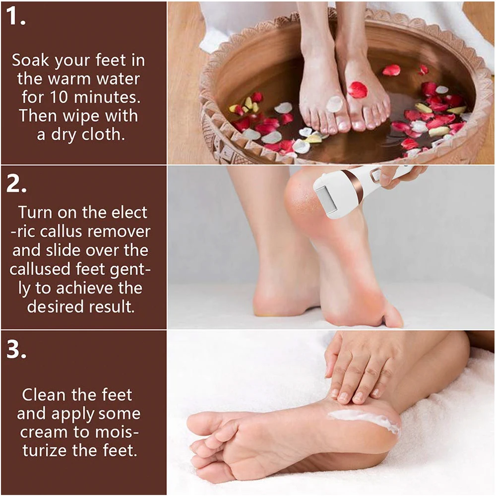 Электрический набор для удаления мозолей для ног, перезаряжаемый пульверизатор с 3 шлифовальными головками, водонепроницаемый портативный пилочка для ног, с твердой, потрескавшейся и сухой кожей, педикюрные инструменты для ухода за ногами Особенности: 1. Этот продукт предназначен для сухой и грубой руки, кожи ног или пятки и не должен использоваться в других частях тела. 2. Поставляется с 3 различными роликовыми головками: Мелкая роликовая головка-подходит для мозолей рук, свернутой омертвевшей кожи и более деликатного ухода за кожей; Обычная роликовая головка-подходит для новообразованных мозолей и нормального ухода за кожей; Грубая роликовая головка-подходит для упрямых толстых мозолей и омертвевшей кожи. 3. Аккуратно поверните роликовую головку, чтобы оставаться в сухой и шероховатой области кожи в течение 2-3 секунд. Аккуратно проведите валик над кожей и не нажимайте слишком сильно, иначе изделие перестанет работать. 4. Перед использованием очистите и смягчите кожу, затем высушите кожу, чтобы обеспечить наилучшие результаты. Не используйте этот продукт, если на вашей коже есть ранка или кровотечение. Характеристики: Материал: АБС-пластик Цвет: белый Размер: 16,5*6,5*3,5 см Вес: 300 г Упаковочный лист: 1 * хост 1 * зарядный шнур 1 * Чистящая Щетка 3 * Роликовые головки 1 * Руководство пользователя