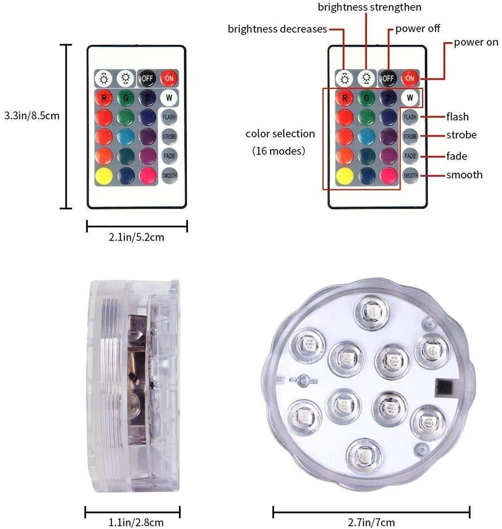 Подводный светильник с пультом дистанционного управления, 10 светодиодов, подводный светильник на батарейках, уличная ваза, чаша, украшение для вечеринки, сада
