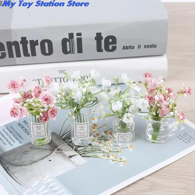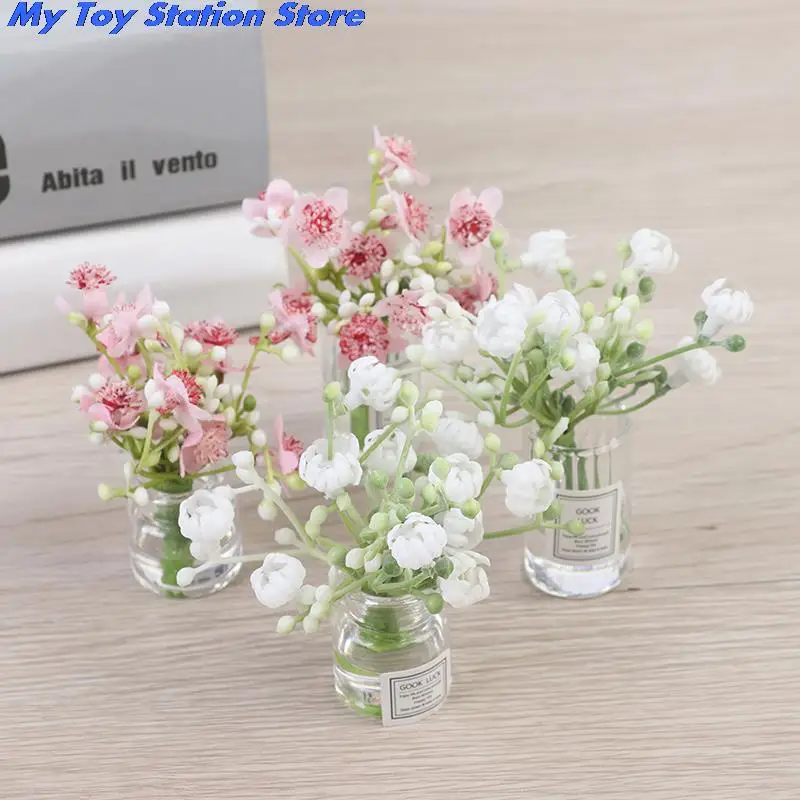 1 шт. 1:12 Кукольный Миниатюрный цветок жасмина Ваза Набор Модель декора аксессуары