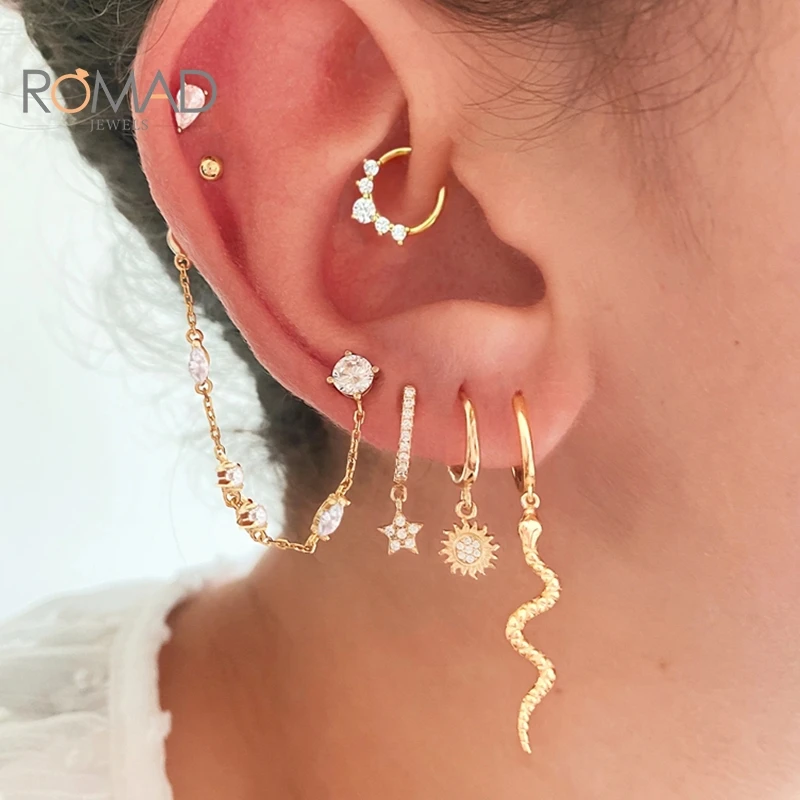 Круглые маленькие серьги-кольца ROMAD для женщин и девушек, вечерние подарки, серьги с жемчугом и змеиным крестом, ювелирные изделия, Золотые серьги, женские серьги