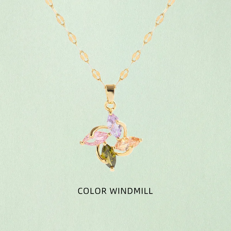 Красочные ветряная мельница ожерелье для женщин 2020 ювелирные изделия титановая сталь кристаллы циркония ожерелье роскошное колье, японский, корейский,