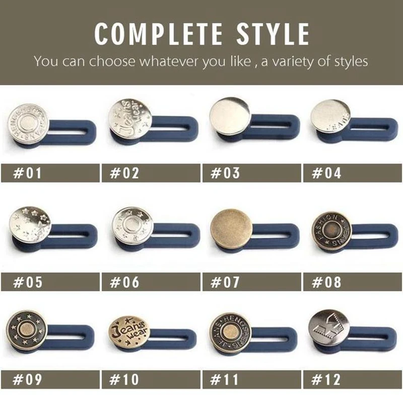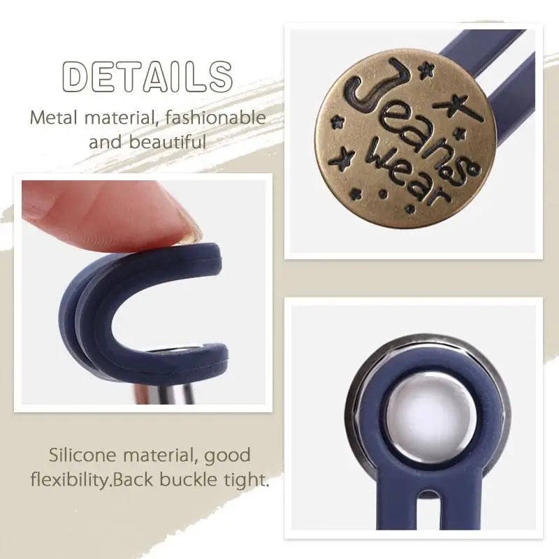 Сочетание кнопок премиум классаВключает в себя12 различных стилей джинсовУдлиняющие пуговицы на поясе,Вы можете выбрать один любимый стиль для использования в соответствии с вашими штанамиПозволяет сочетать их с цветом ваших брюк, который может соответствовать вашим разным размерам одежды.
