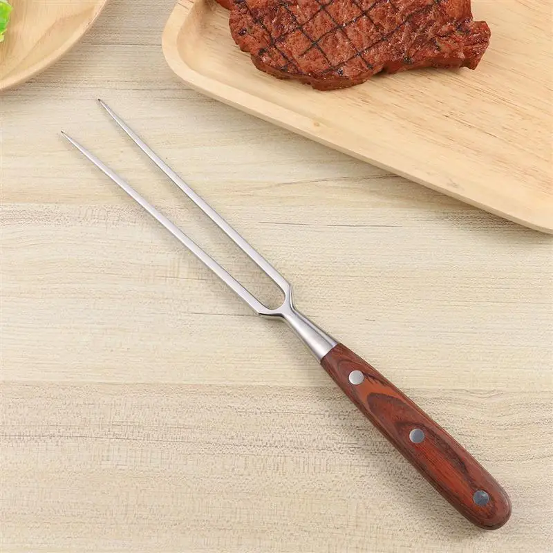 Палочка для барбекю, из нержавеющей стали, 2 зубца, инструменты для барбекю на открытом воздухе, с деревянной ручкой, для кухни, кемпинга