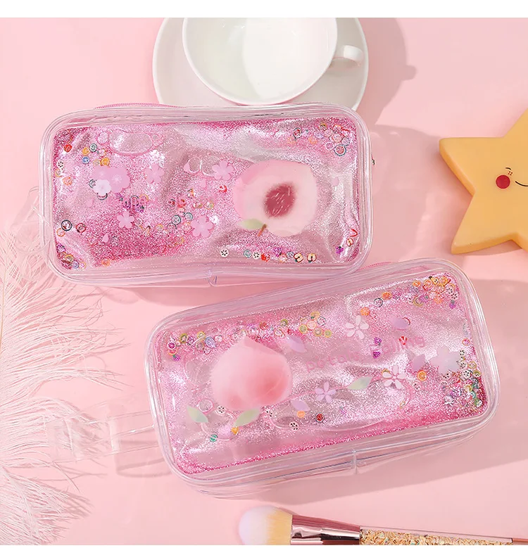W G милый мультяшный персиковый Прозрачный чехол для карандаша с сыпучим песком авокадо чехол для карандашей большой емкости канцелярские принадлежности Ins портативная косметичка