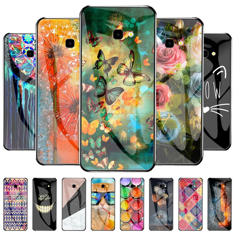 Роскошные стеклянные Чехлы для Samsung J4 Plus, чехол из закаленного стекла для Samsung Galaxy J4 2018, задняя крышка SamsungJ4 Plus, жесткие чехлы