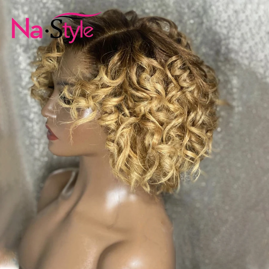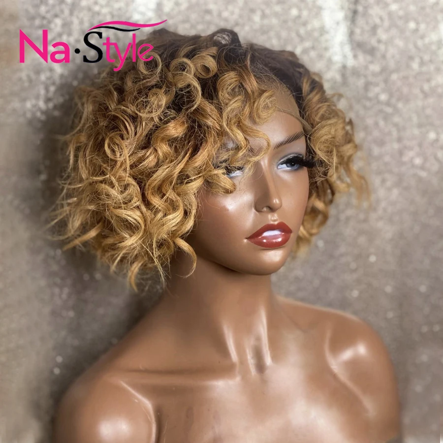180%, парик с эффектом омбре, медовая блондинка, Боб, цветные бразильские кудрявые парики без повреждений, передние парики из человеческих волос, передние парики на сетке для женщин