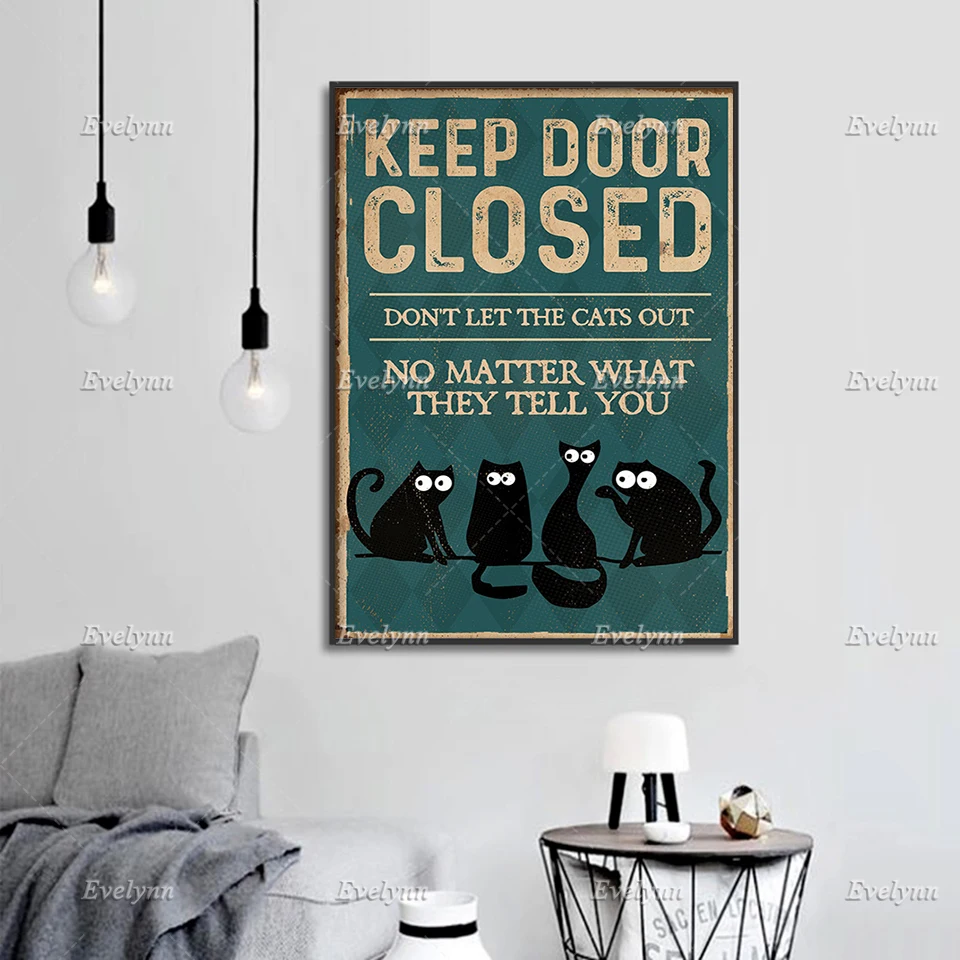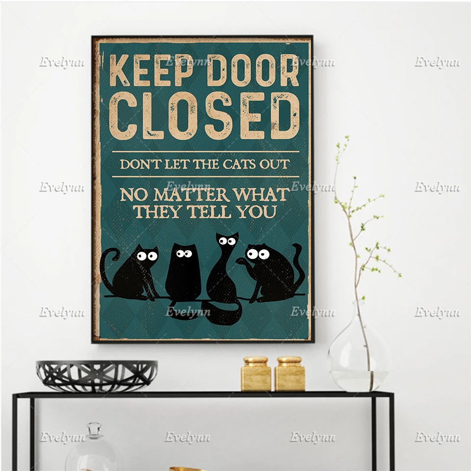 Влюбленные черной кошки держат дверь закрытой, не позволяйте кошкам выпустить, независимо от того, что они скажут вам, постер, домашний декор, холст, плавающая рамка