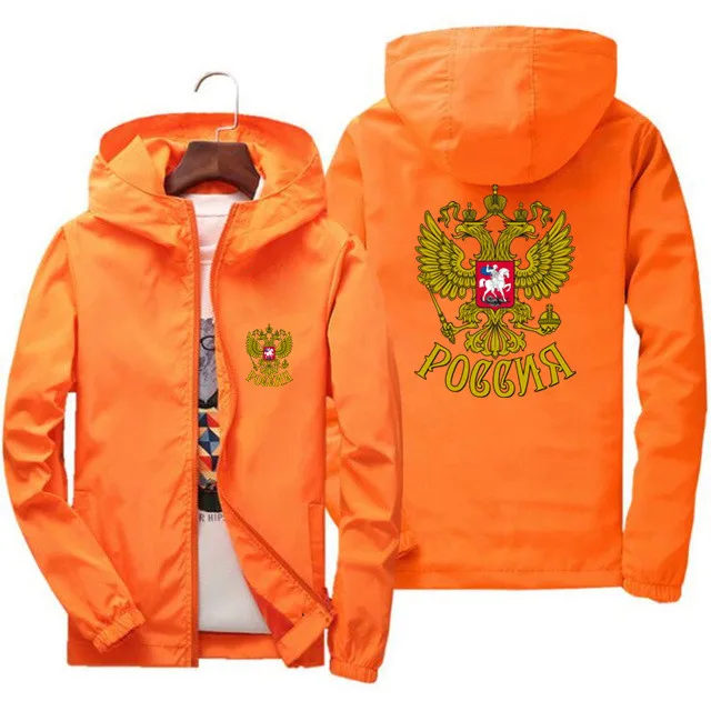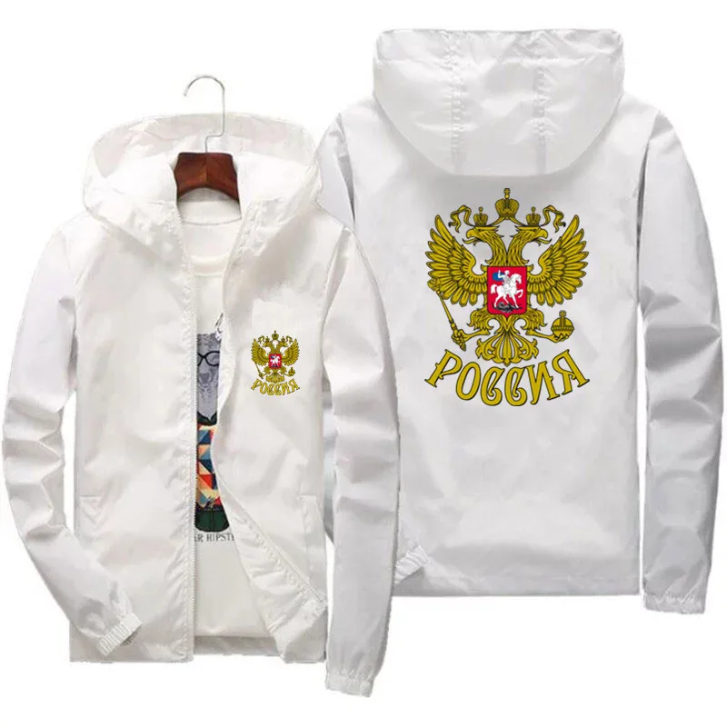 Ветровка мужская с капюшоном, повседневная спортивная куртка-бомбер на молнии, с гербом России и орлом, размера плюс 7XL, весна