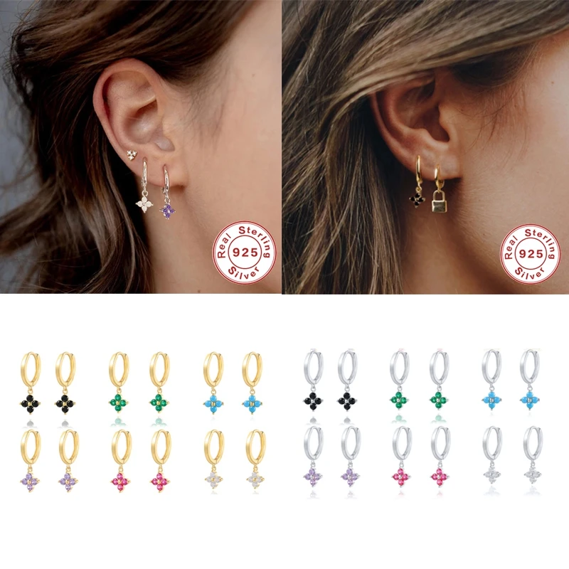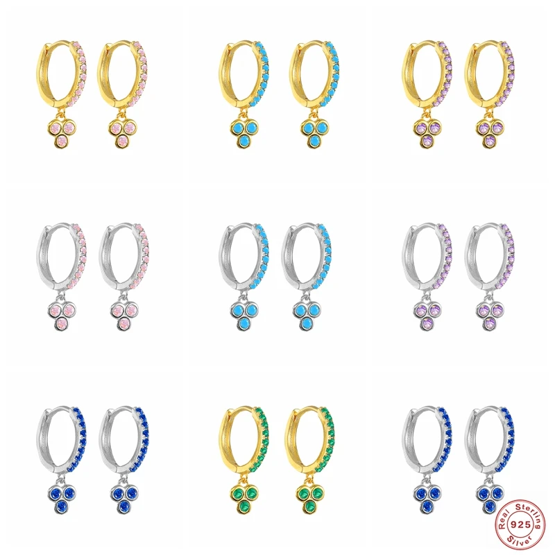 Pendientes плата 925, украшенные разноцветными кристаллами круглый фианит серьги для женщин на день рождения, подарок кубического циркония серьги-кольца, ювелирные изделия