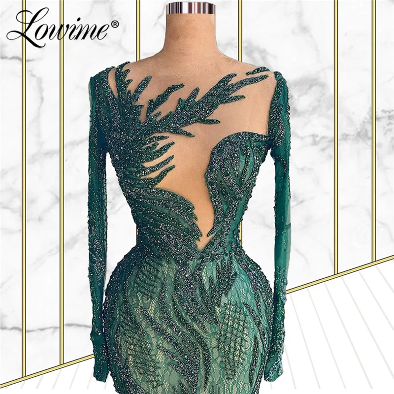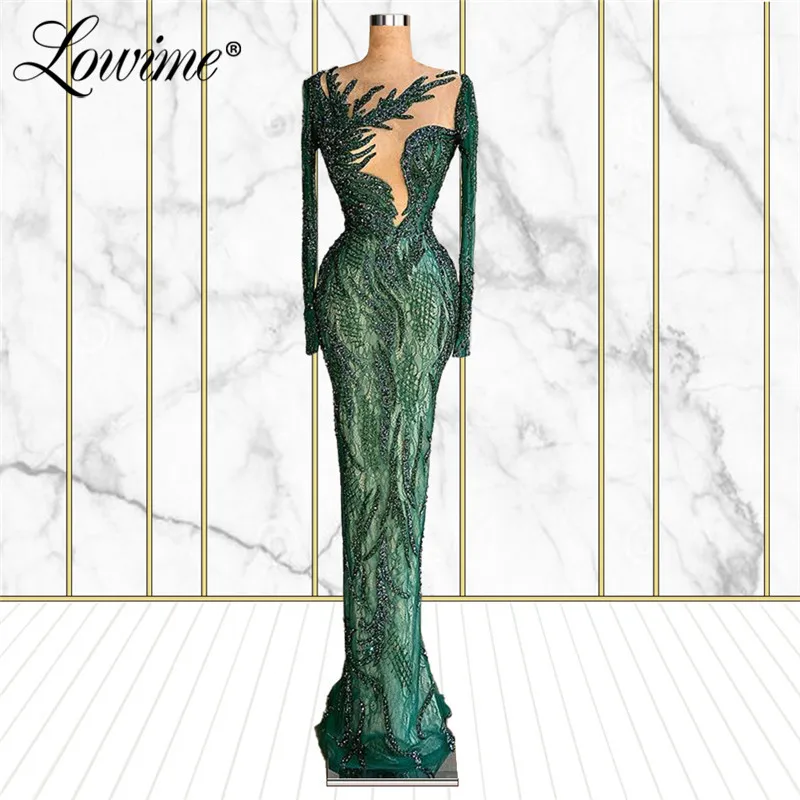 Lowime зеленый кружевный мусульманский вечерние платья вечерние 2021 размера плюс с отделкой бисером одежда с длинным рукавом Ближний Восток женские вечерние халаты