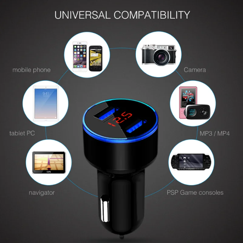 Автомобильное зарядное светодиодный ным дисплеем, USB-устройство дл...