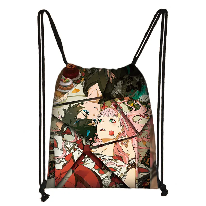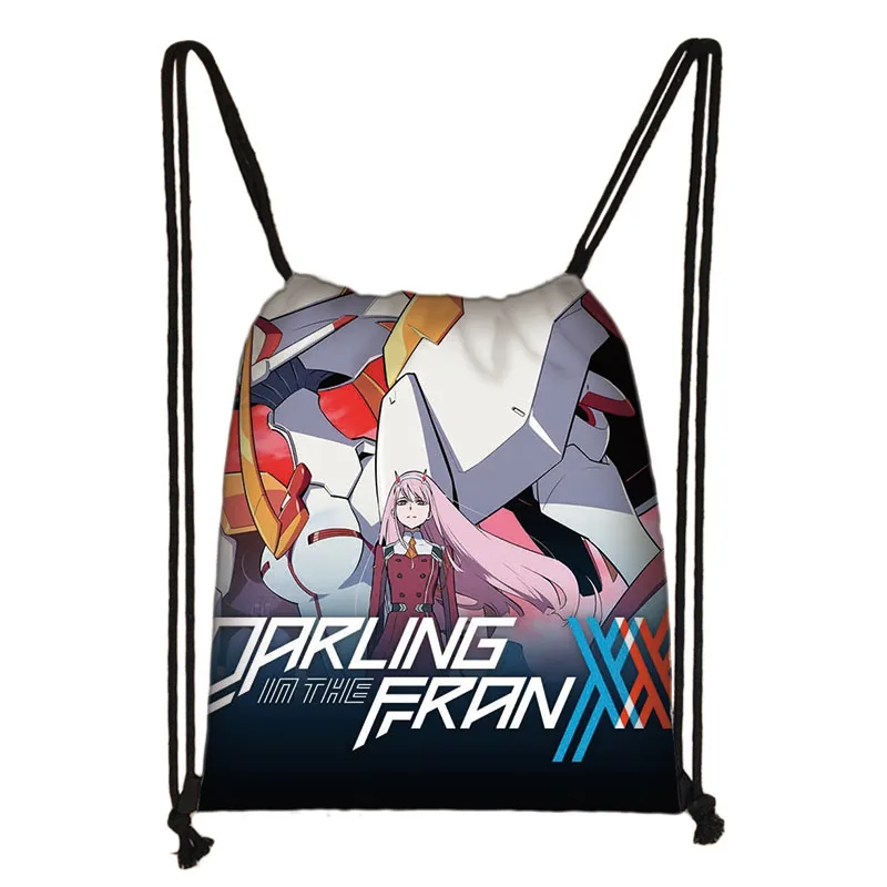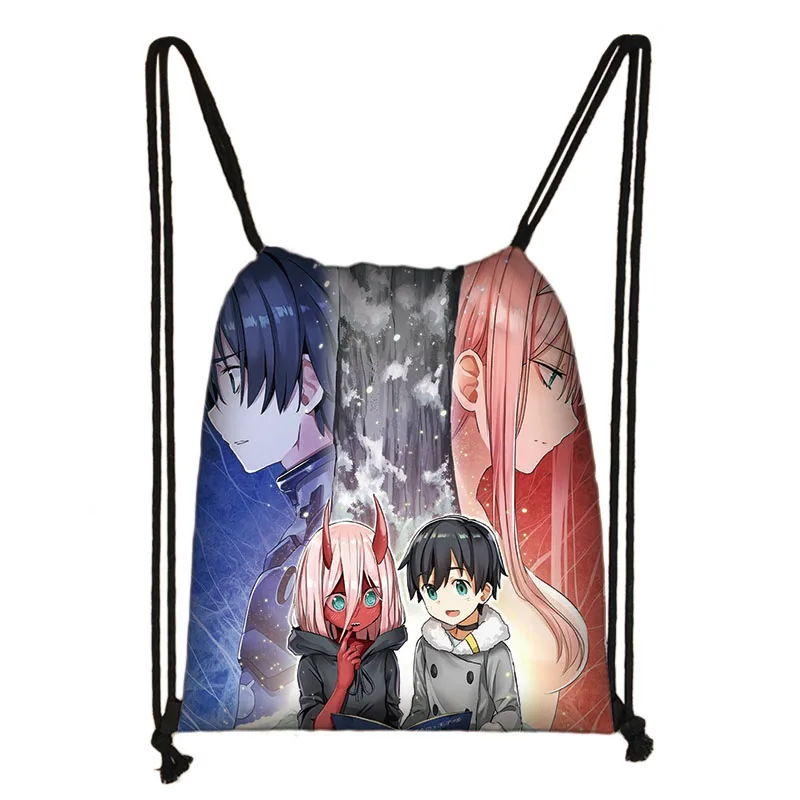 Рюкзак на шнурке для мужчин и женщин, школьные дорожные сумки для покупок с рисунком аниме Darling In The FranXX, сумка для хранения Zero Two